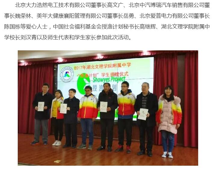 让爱成为前行的动力:2017年湖北文理学院附中授渔计划学生捐赠仪式举行