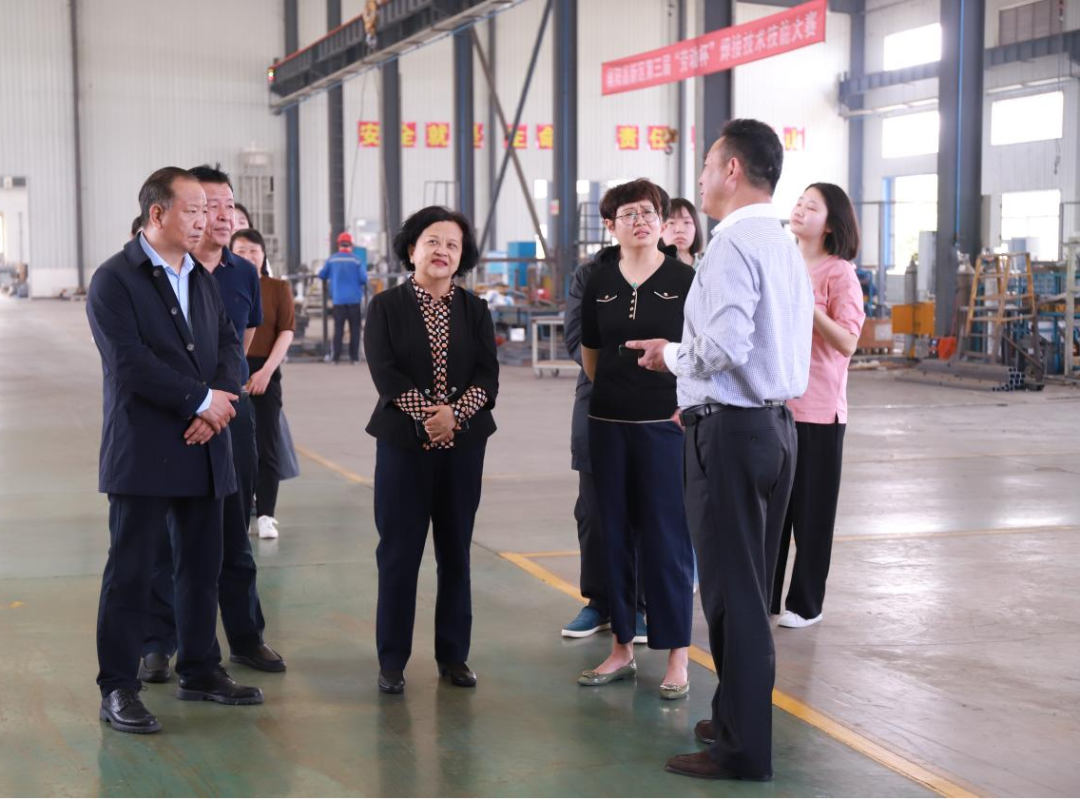 朱云慧主席一行首先来到大力电工钒电池的生产车间,在高总的带领下参观了钒电池的电堆、电解液、中试车间、无人值守1MWh的钒电池储能系统示范等,深入了解了大力电工钒电池产品的生产工艺、关键技术等,并认真询问了钒电池的产业发展情况。