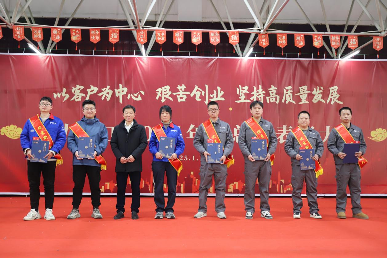 会议最后,公司董事长、总裁高文广作出重要讲话。高总首先对全体获奖人员及部门表示热烈祝贺。随后,从公司研发创新、质量安全、人才队伍、社会公益、高质量发展、艰苦创业六个方面逐一总结点评,并对2025年经营目标等工作作出安排部署。高总强调新的一年,要艰苦创业,追求高质量发展。面对种种困难,我们要有长征、抗美援朝等时期的拼搏意识,超强的韧性,树立坚定的发展信心,聚焦产品、客户、资金、人力等资源,要有奉献与吃苦精神,一同投身奋斗事业。
