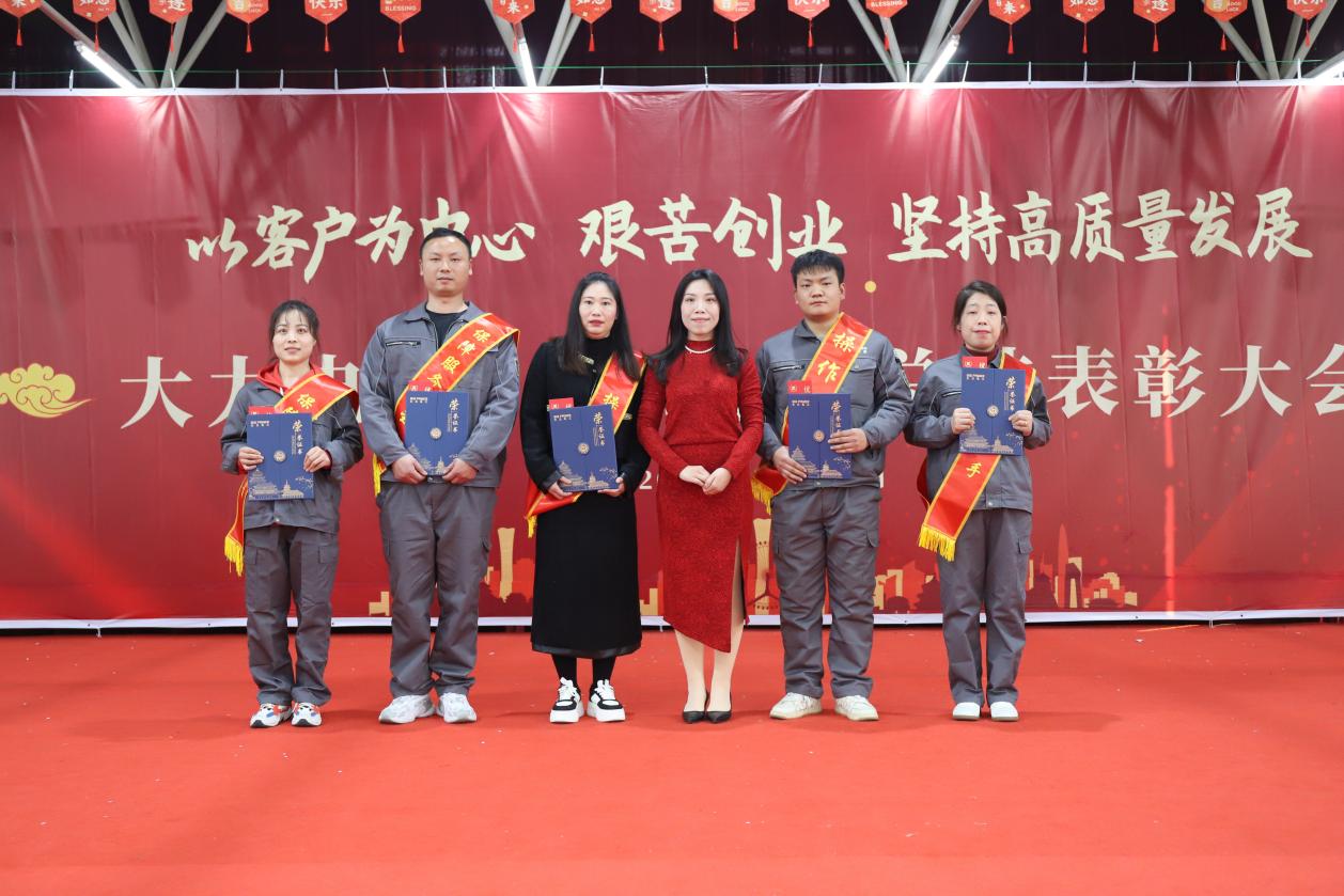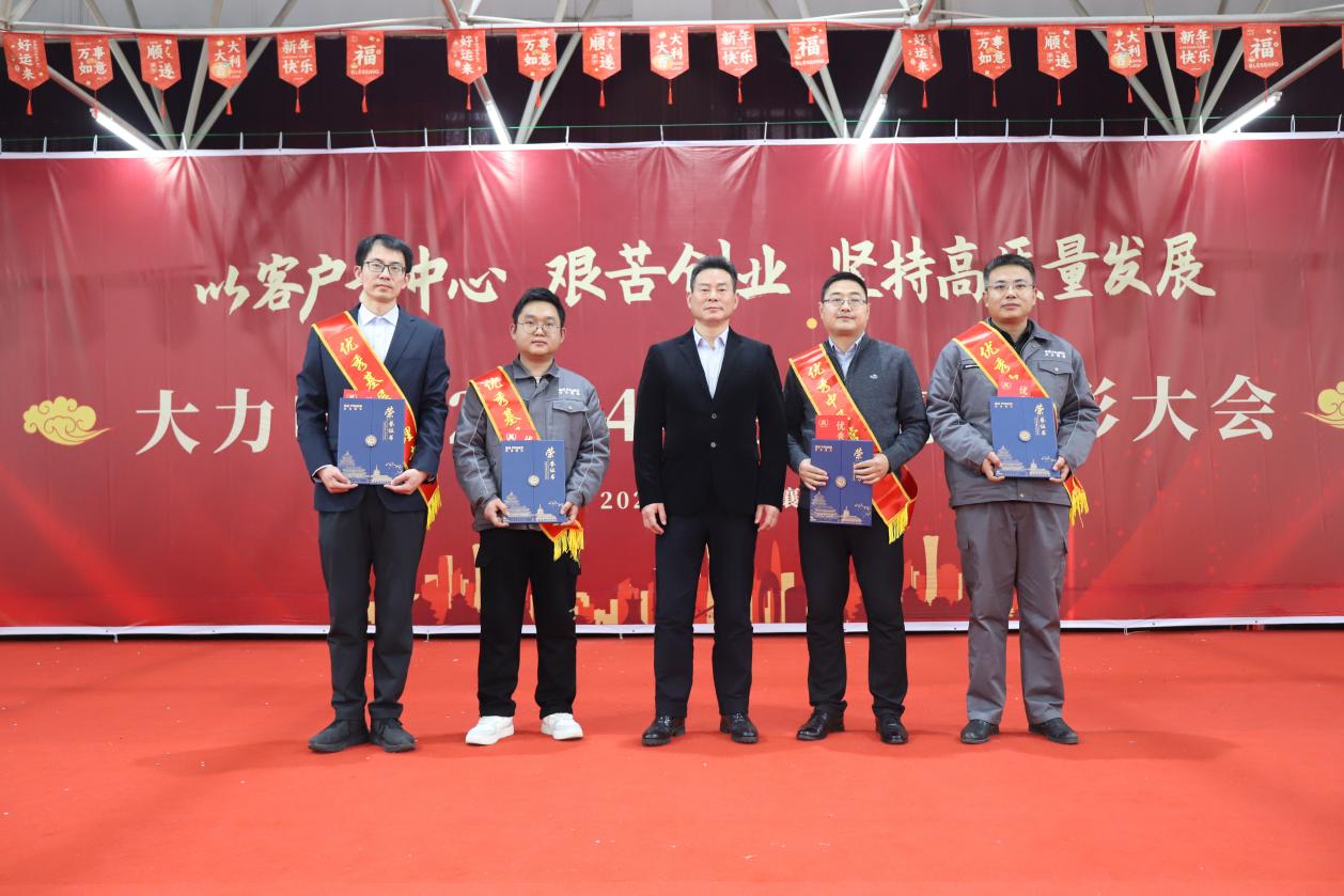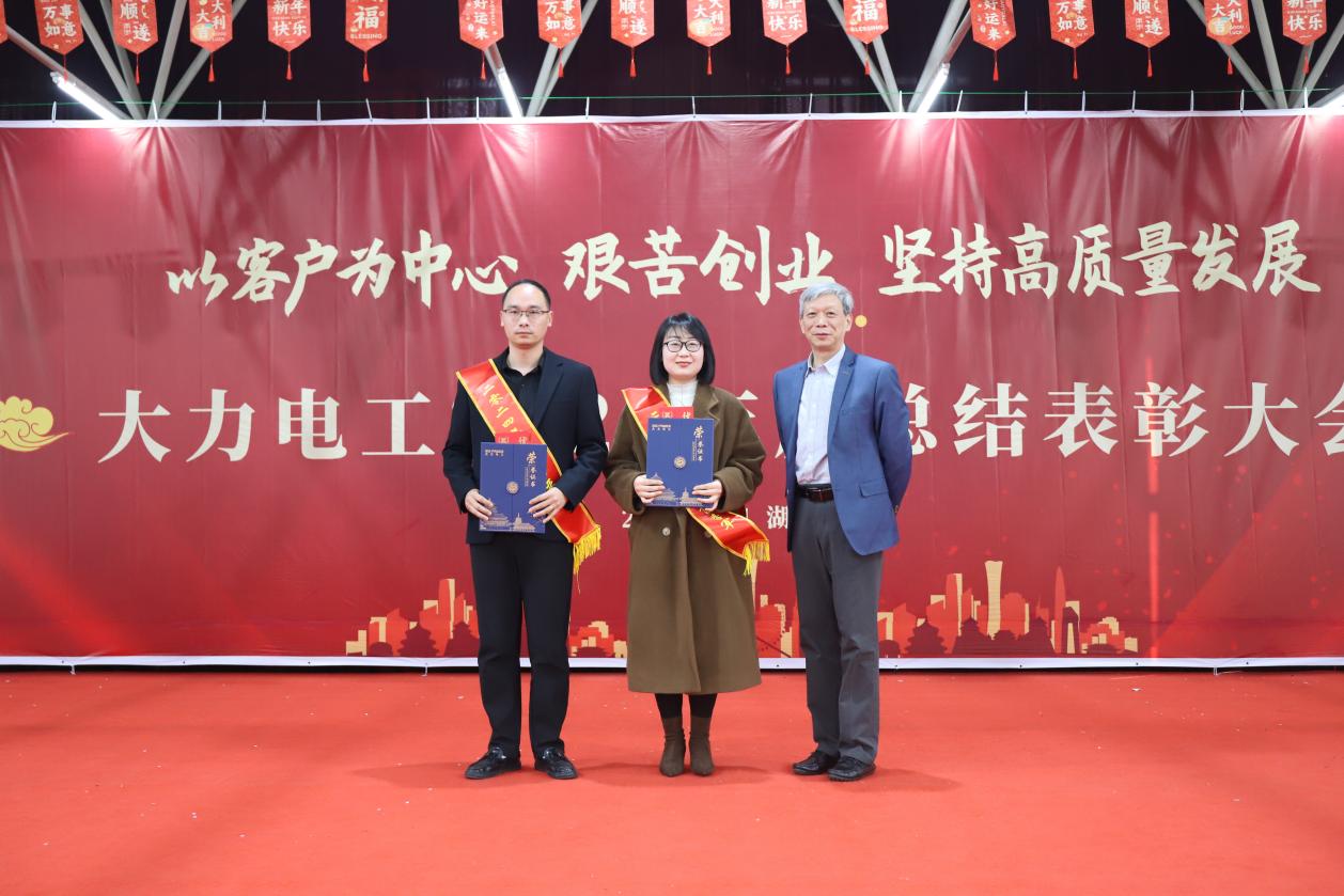 在观看了来自北京公司、武汉环保科技、湖南钒谷、出差售后伙伴等未赶赴现场参会人员共同录制的新年祝福视频,感受到作为一个共同体的“大力人”送出的暖暖情意后,大会进入到荣誉颁奖环节,由大力电工党委副书记、工会主席张继宏宣读表彰通知,共有40名员工、4个团体获此年度殊荣。