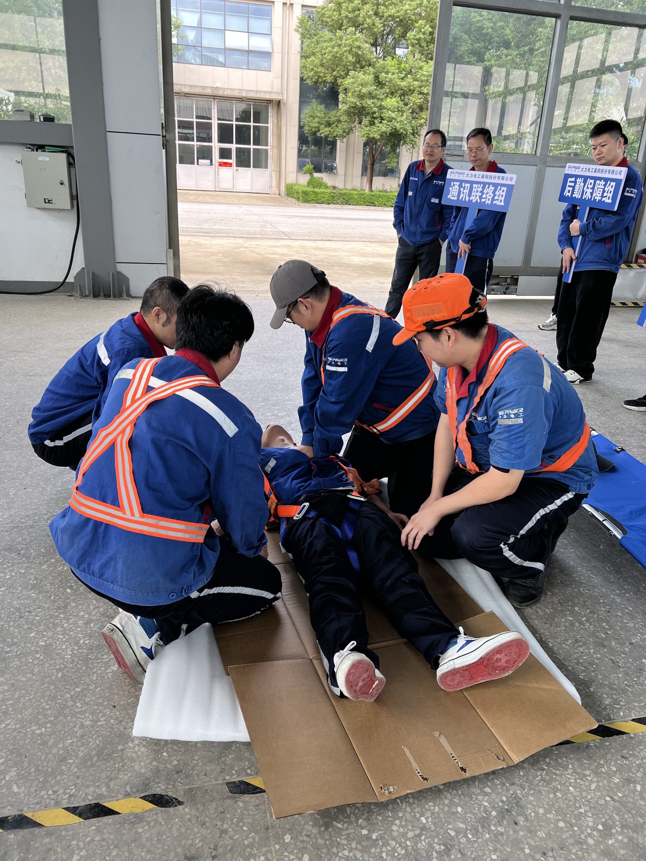 随着演练总指挥高总一声令下,演练拉开帷幕。作业人员迅速进入角色,严格按照规范流程进行空间通风与气体检测,每一个动作都严谨规范,展现出良好的专业素养。本次演练模拟研发部工程师在维护保养大电机作业过程中突发意外状况——1名作业人员突然晕倒。面对这一紧急情况,现场立即启动应急预案,各小组迅速响应、协同作战。警戒组以最快的速度划定安全区域,有序疏散无关人员,确保现场秩序井然;救援组身着专业防护装备,凭借精湛的技能和默契的配合,通过安全绳将昏迷人员安全转移至通风良好的区域;医疗组则同步开展心肺复苏等急救措施,争分夺秒与死神赛跑。整个救援过程紧张有序、环环相扣,各环节衔接紧密、处置高效,最终“伤员”成功脱离危险,演练取得了圆满成功。